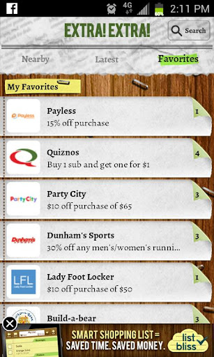 From InMarket, the makers of the Checkpoints app, comes another great free app. Extra! Extra! Coupons & Deals is available on both Android and the iPhone stores. It used to be the local deals section on Checkpoints. What I love about it is the simplicity in execution, and the fact that it works so quickly and seamlessly. (Doesn't seem to be a battery hog, either.)